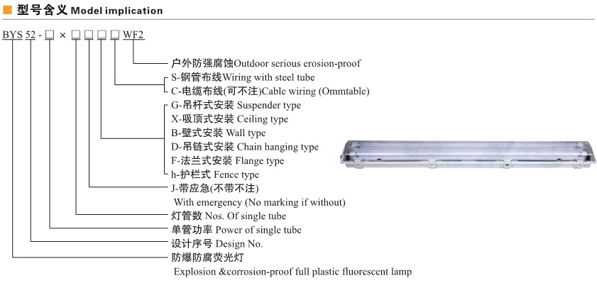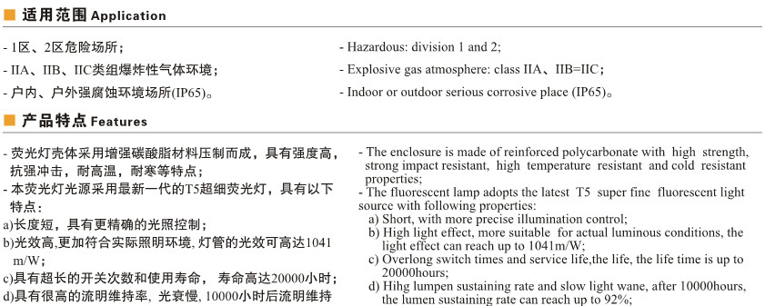 BYS52-系列防爆防腐全塑荧光灯(T5灯管)(T8灯管)(ⅡC)